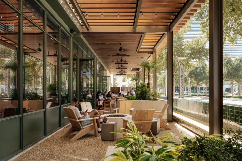 One standout project? The Balboa Surf Club, an upscale, mid-century modern seafood restaurant located in Houston’s Uptown District. Designed by the Michael Hsu Office of Architecture, the space is an elegant fusion of Brazilian brutalism, lush textures, and warm wood tones.