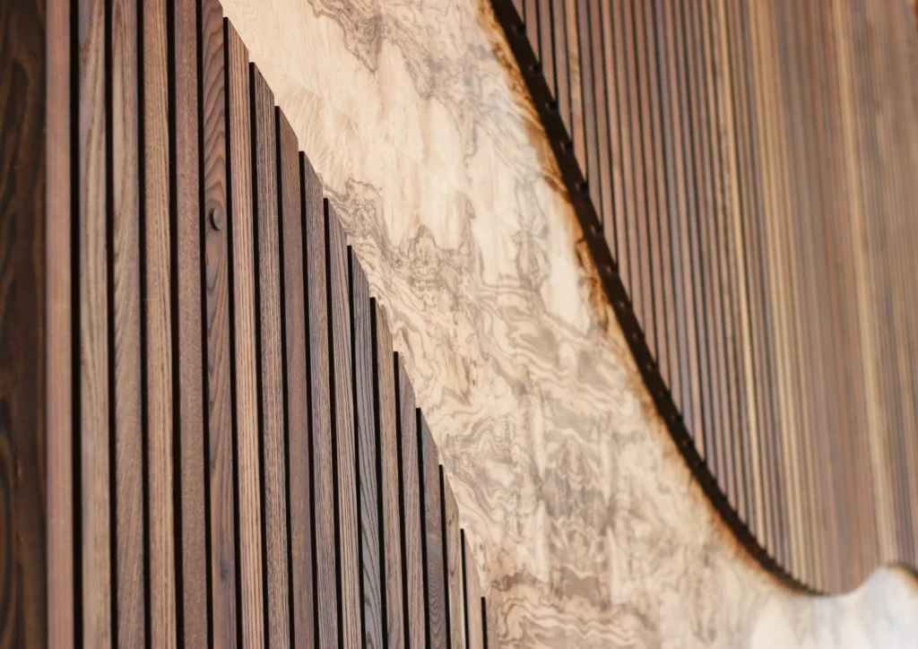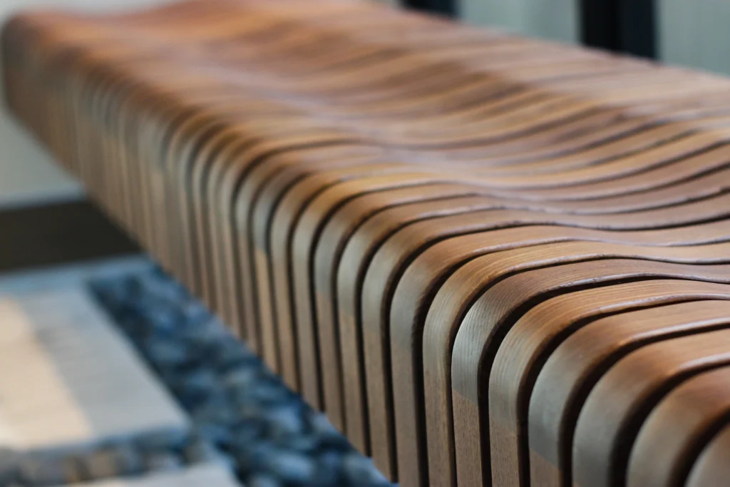 - Can you walk us through a few standout design elements, like the recent curved bench shaped for comfort, and how Thermory’s characteristics supported that level of craftsmanship?